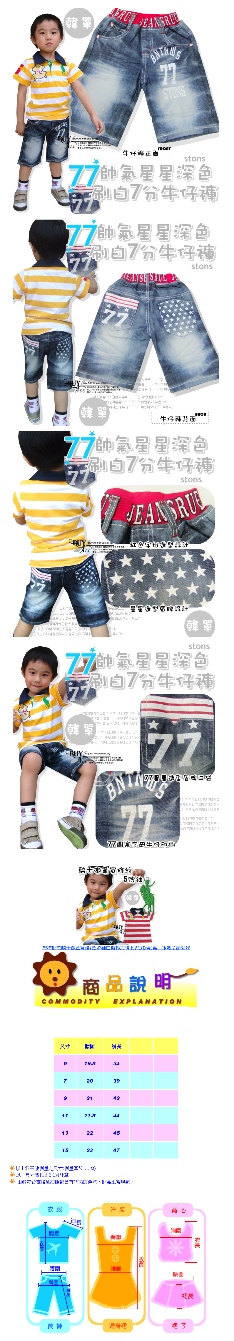 韓單台製77帥氣星星深色刷白7分牛仔褲 春夏短褲/幼稚園最好搭/帥氣有型牛仔褲