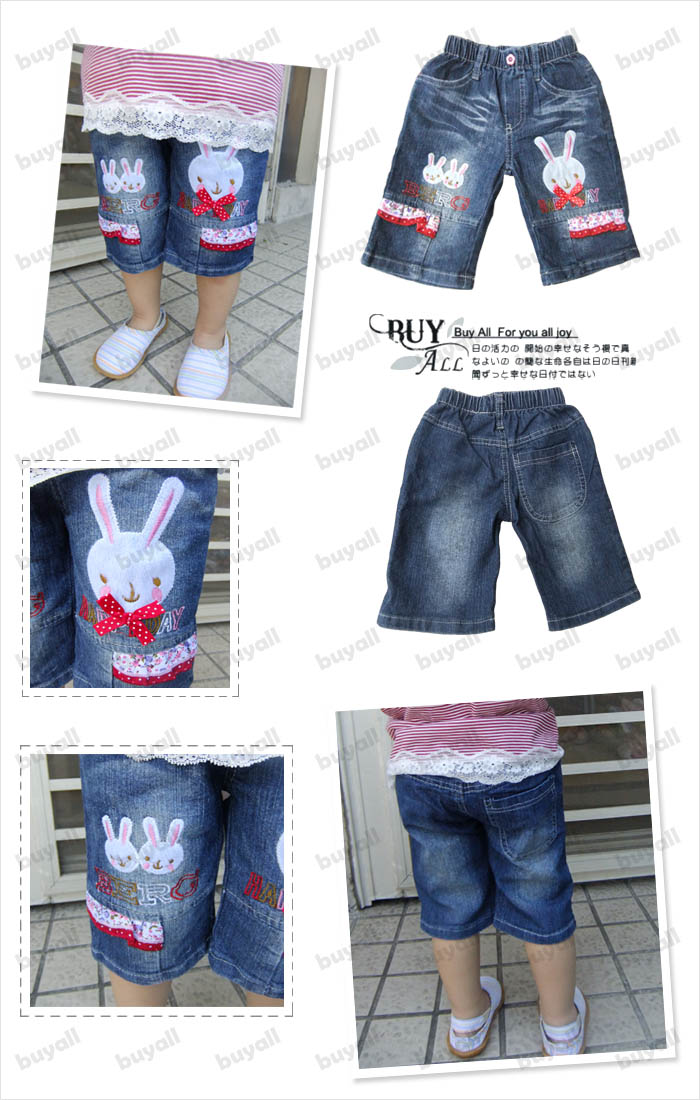 兔兔款荷葉拼花刷色牛仔褲/春夏短褲/休閒短褲☆7/9/11/13/15/17