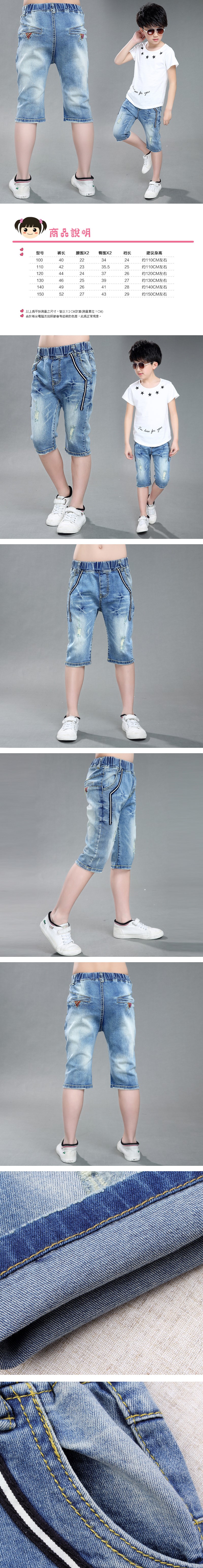 【百搭牛仔系列】兒童百掿牛仔短褲精緻設計版七分褲系列帥氣刷白牛仔褲/春夏短褲★男女適用100-150cm