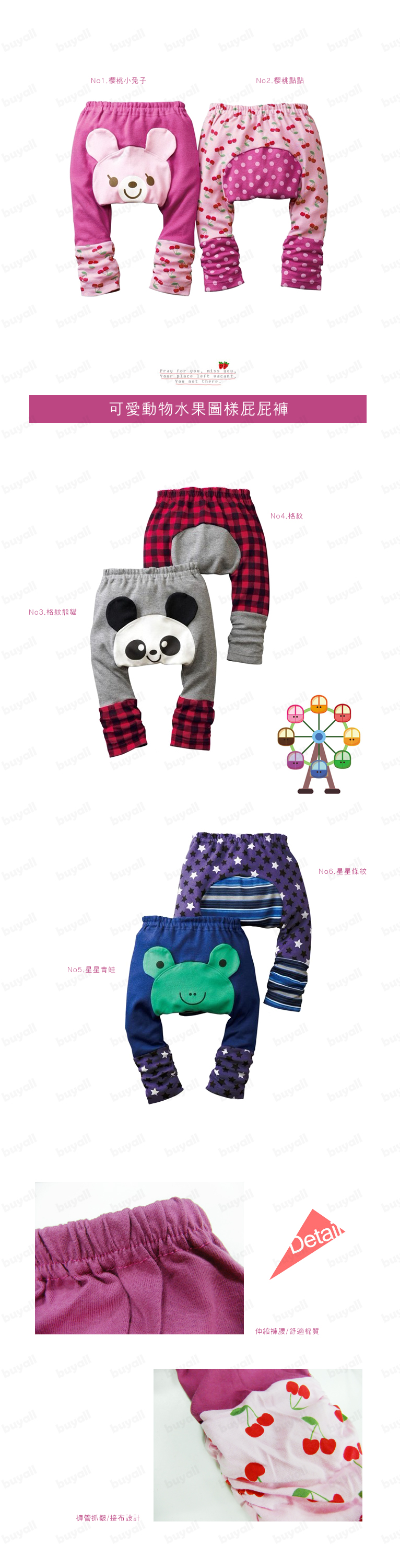 【嬰幼童秋冬新款系列】可愛動物水果圖樣屁屁褲/9分褲/長褲/抓皺可愛動物屁屁褲/棉質長褲 ☆80-90-95☆ ★6款★