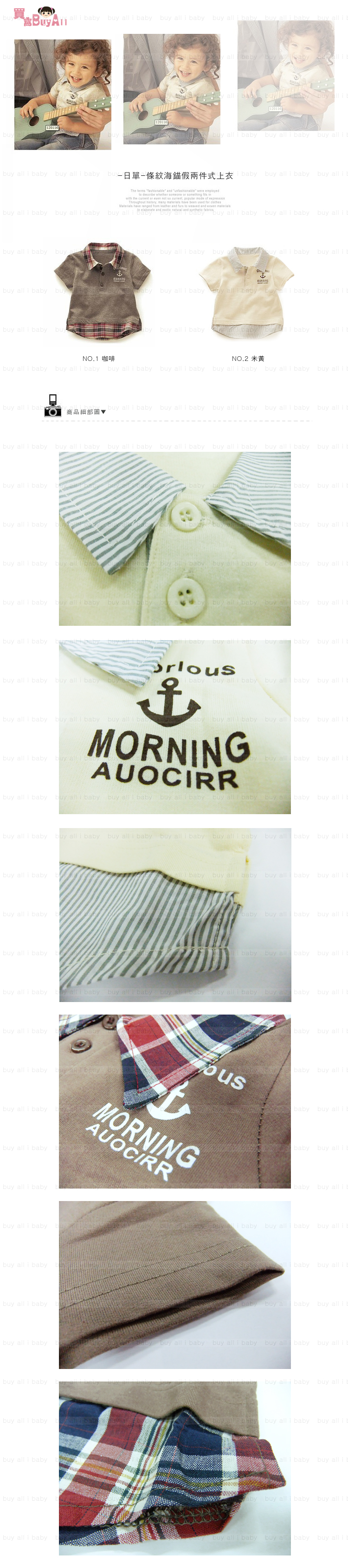 【時尚小王子宴會必備百搭假兩件紳士上衣】-條紋海錨假兩件式上衣/短袖上衣/休閒上衣/宴會上衣☆80/90/100