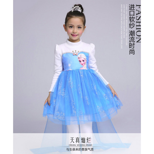 《冰雪奇緣艾莎公主連身裙》~新年公主裙加絨加厚~連身裙/聖誕節童裝/萬聖節套裝/女童連身裙/套裝