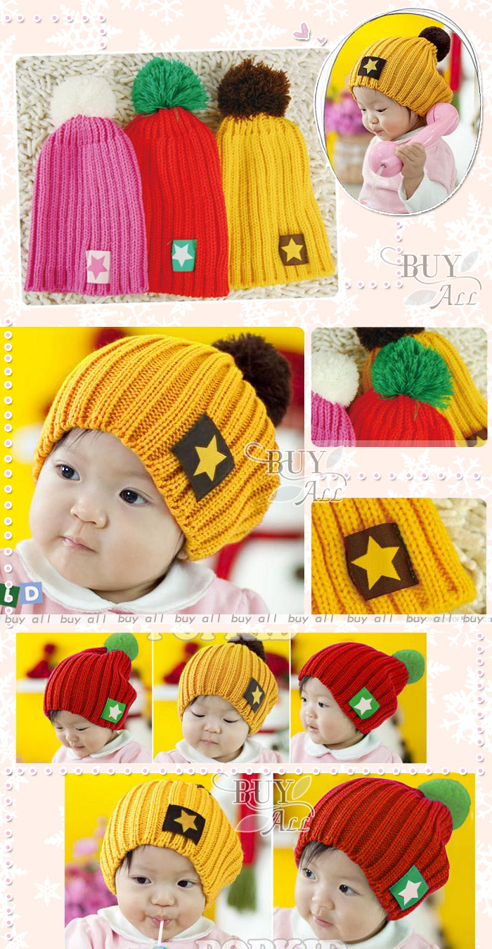 【秋冬新款童裝,百貨,配件,禦寒保暖系列】韓版糖果色星星貼布保暖彈性毛線帽 /球球帽/秋冬保暖帽