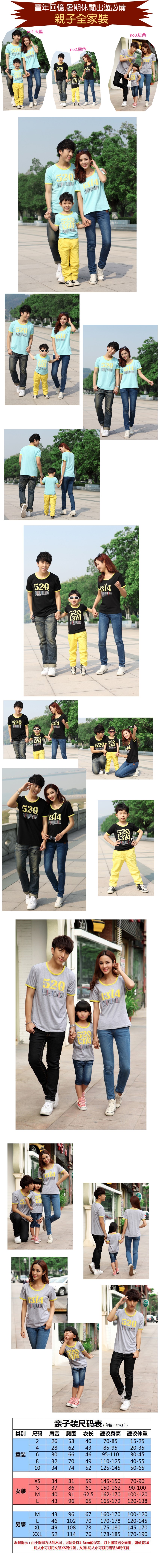 【新款春夏時尚親子裝】同圖不一定同質,手感佳,不起毛球,不掉色,舒適純棉質精緻作工,520寶貝環保無毒印刷親子裝90-2XL