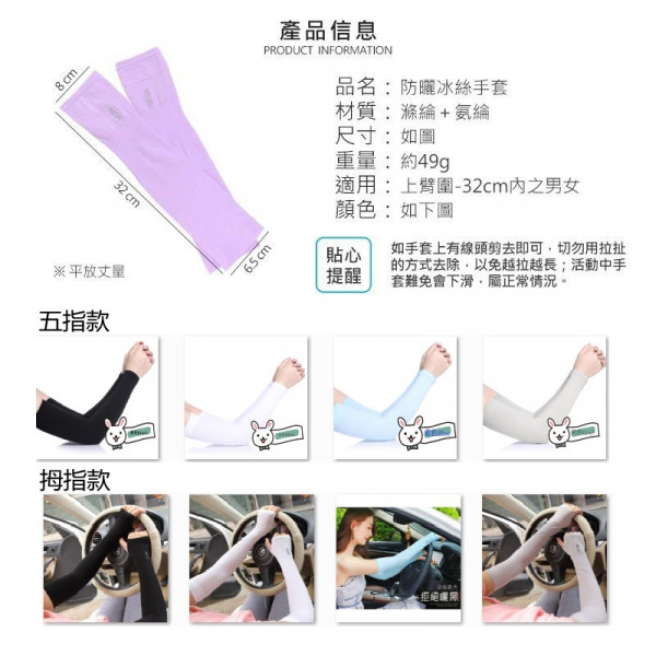 【防曬系數50-春夏冰絲防曬系列】防曬袖套 手臂套 涼爽透氣冰絲袖套 袖 騎車 運動 戶外防曬手套 夏天開車防曬