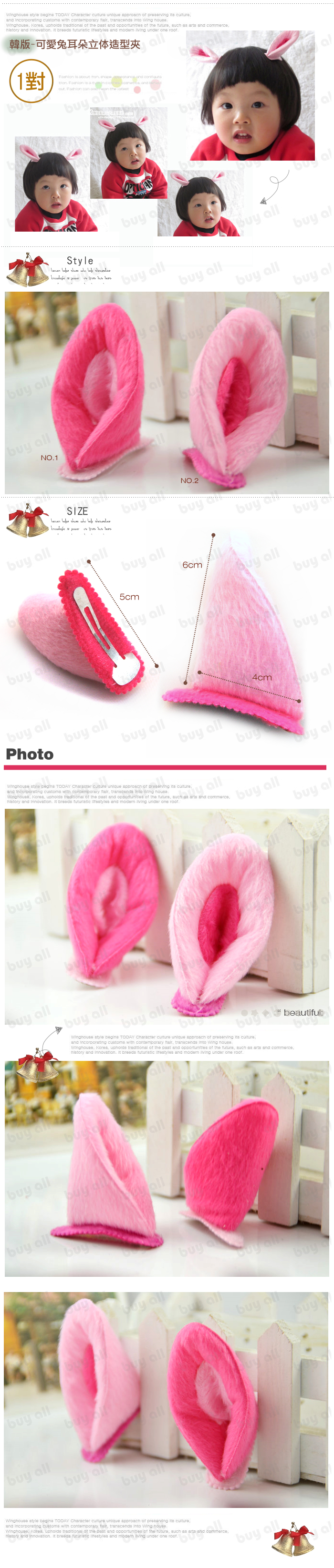 【兒童表演,宴會,裝扮配件髮飾造型系列】1對2入裝-韓版-可愛兔耳朵立体造型夾/兒童髮夾/鴨嘴夾/橫夾/宴會配件☆