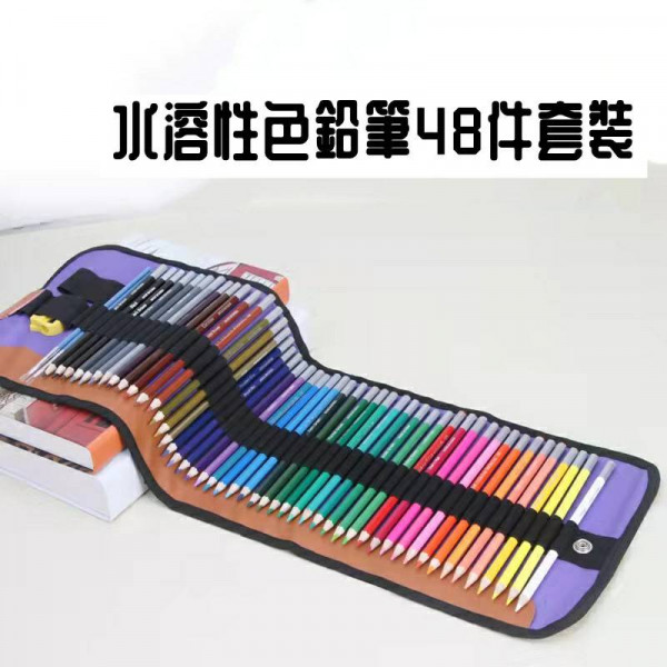 【色鉛筆 48色色鉛筆 捲簾 帆布袋彩色鉛筆 六角色鉛筆 水性色鉛筆 水溶性色鉛筆】48色安全無毒-可水洗水彩筆捲簾套裝/繪畫用具/著色彩色筆