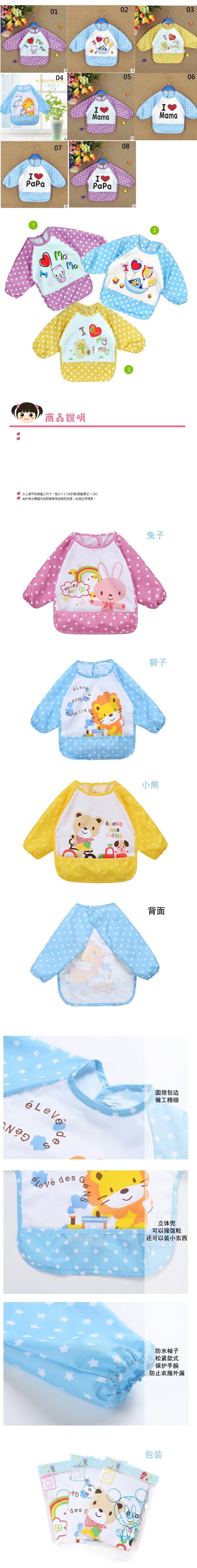 【兒童居家用品系列】新款卡通動物幼童寶寶防水反穿衣/學習衣/吃飯衣/圍兜/口水巾/嬰幼兒用品/ 三款