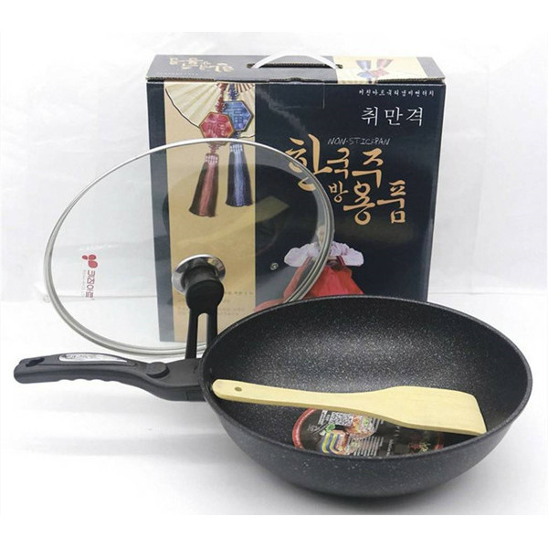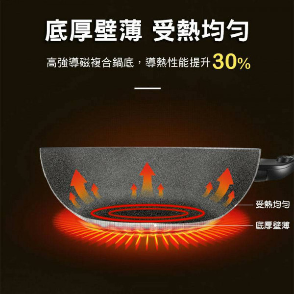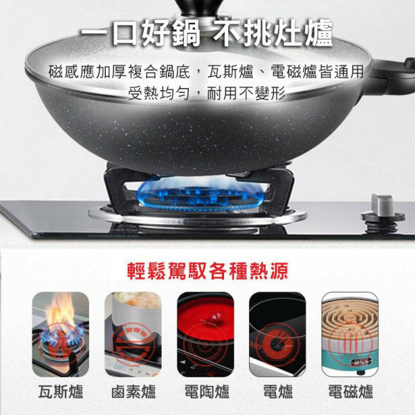 【無煙廚房好廚需要好鍋】麥飯石3件組 輕巧不沾鍋  炒菜鍋子+鏟子+強化玻璃蓋 (底層複合加厚電磁爐也能用)