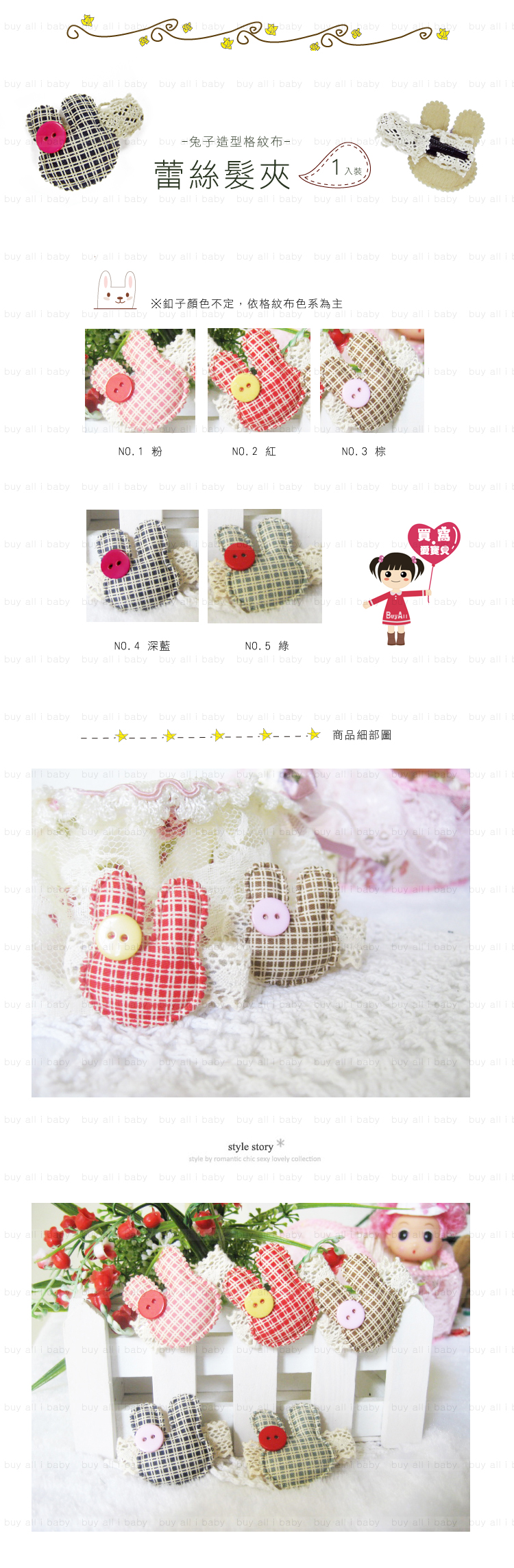 【兒童髮飾配件造型系列】兔子造型格紋布蕾絲髮夾Y夾/兒童髮飾/兒童飾品/ 寶寶髮夾/兒童髮夾/兒童髮飾/瀏海夾 《1入裝》☆5色☆
