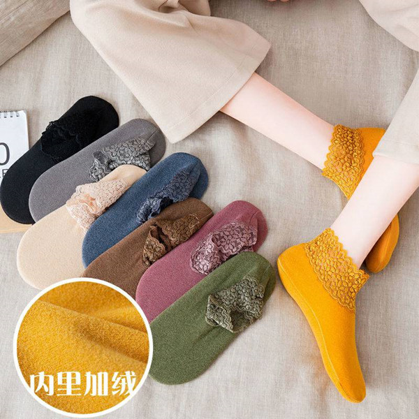 (簡約百搭超級推薦款)四季可穿德絨地板襪蕾絲加厚保暖花邊防滑襪/季短襪/鏤空低幫硅膠防滑/素面百搭★均碼22-26★