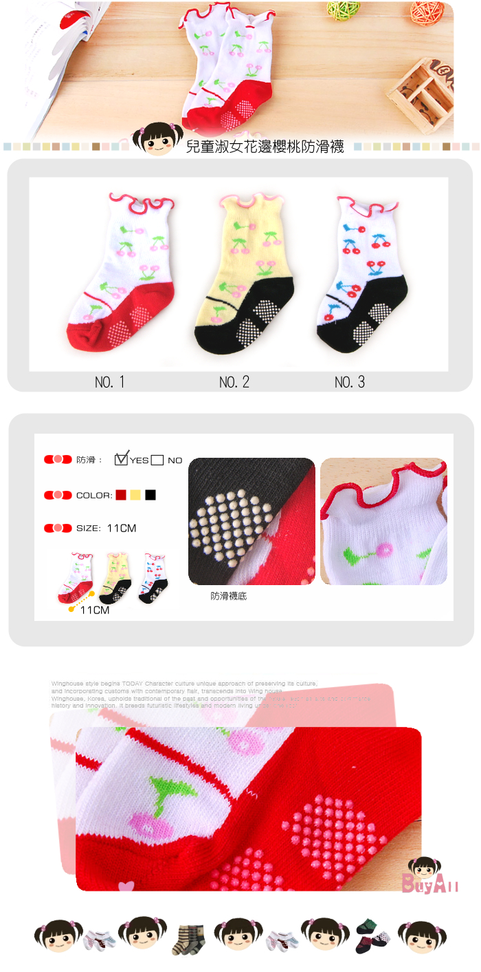 【兒童襪子系列】日單可愛淑女花邊櫻桃防滑襪/兒童襪/防滑地板襪/短襪