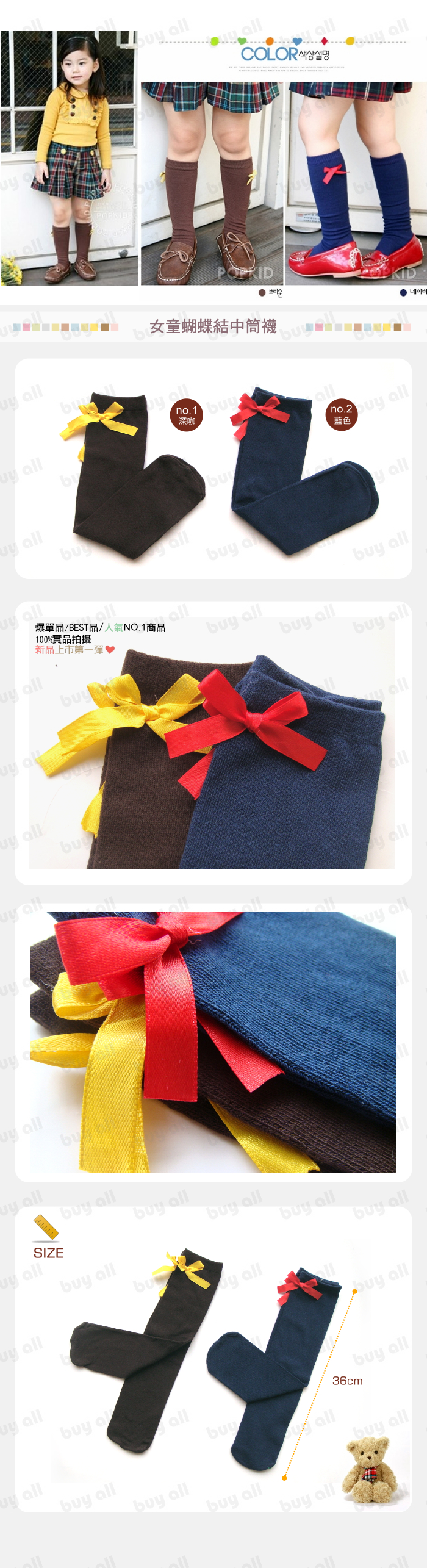 【兒童襪子系列】2色無跟時尚襪好穿搭,甜美小公主不可或缺的款式☆百搭素面蝴蝶結長筒直板襪/無跟襪/膝上襪/長襪☆2款★