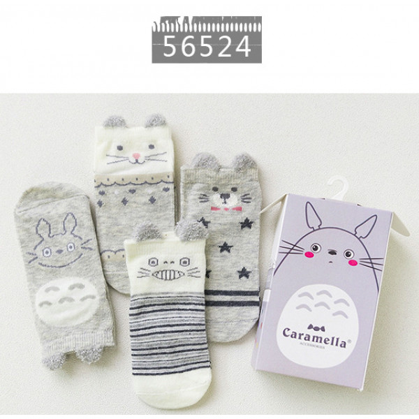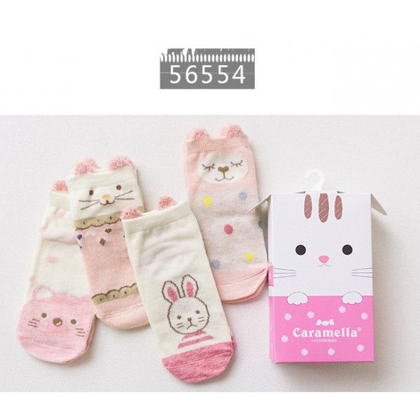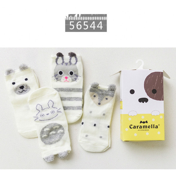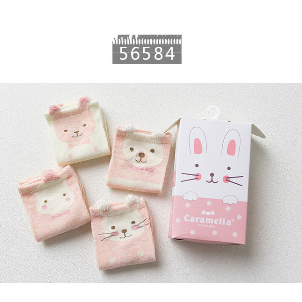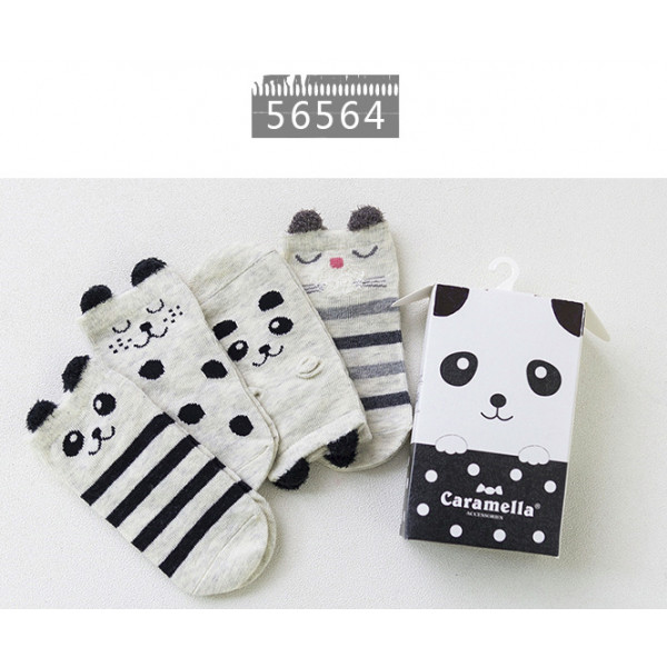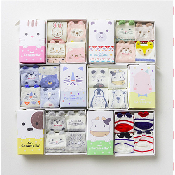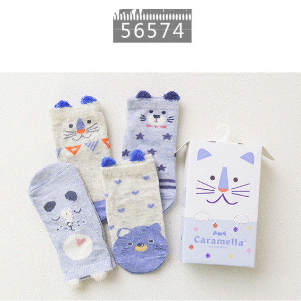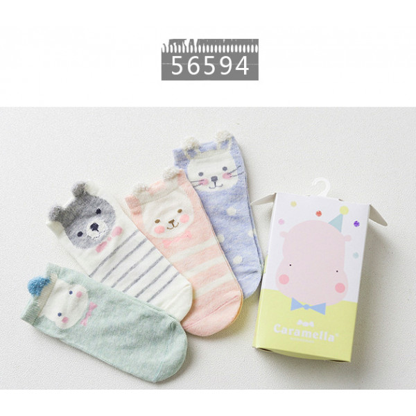 一盒4雙可愛童襪~Caramella卡通動物童襪4雙裝禮盒~★兒童卡哇伊造型短襪★造型襪子/兒童襪子/