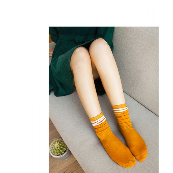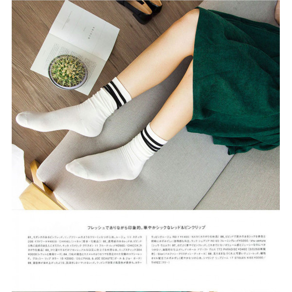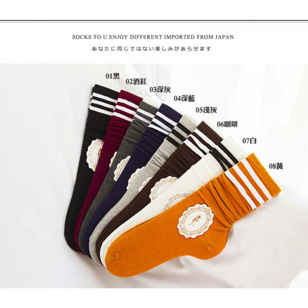 四季可穿韓版學院風韓國條紋堆堆襪/純棉襪子女中筒襪/素面百搭★均碼22-26★