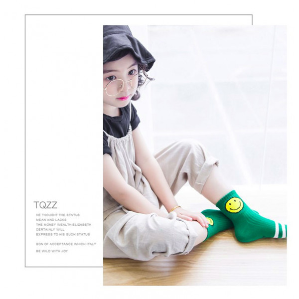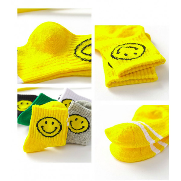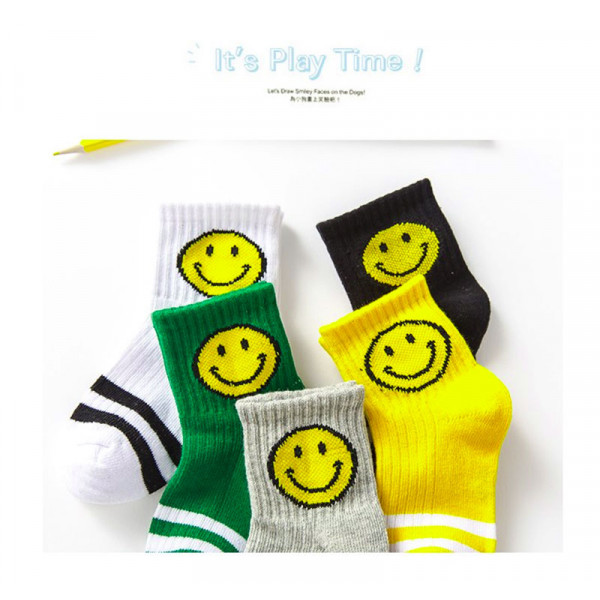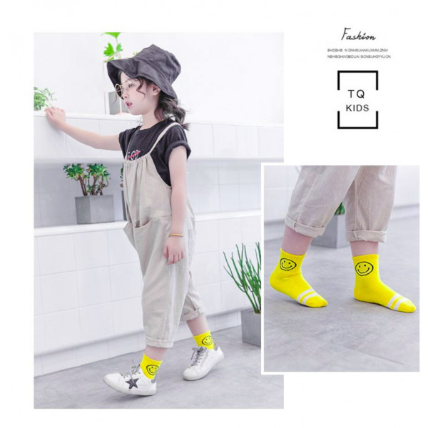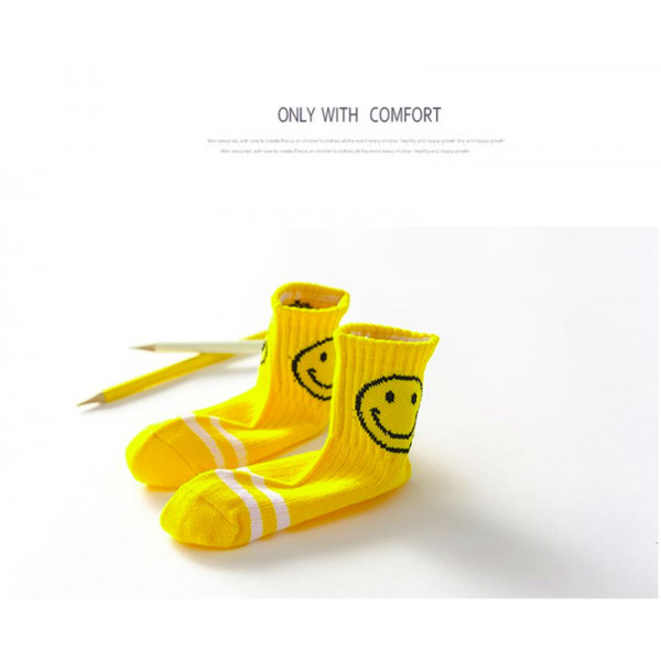 男/女童中筒襪童襪~黃色微笑條紋中筒襪~造型襪子/兒童襪子★5色★S/M/L