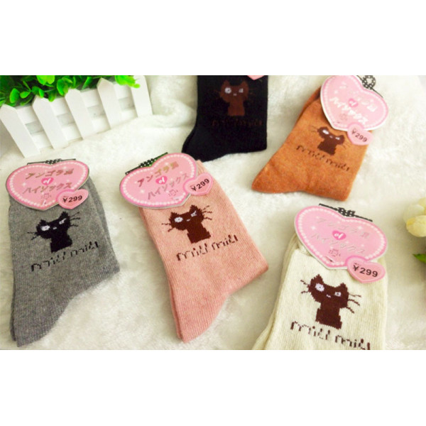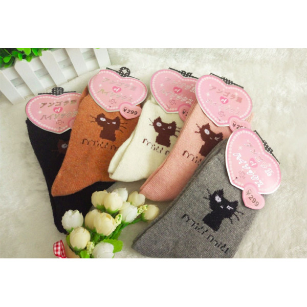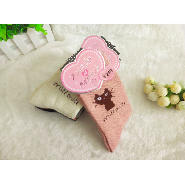大人小孩皆可穿秋冬保暖襪~卡通貓咪款襪子~中厚保暖兔羊毛襪/女襪/中筒襪/厚襪★均碼22-26★
