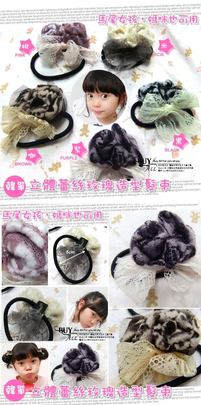 韓單設計款可立體蕾絲玫瑰造型髮束(5色)/兒童髮飾/兒童生日禮物/兒童節禮物(1入裝)