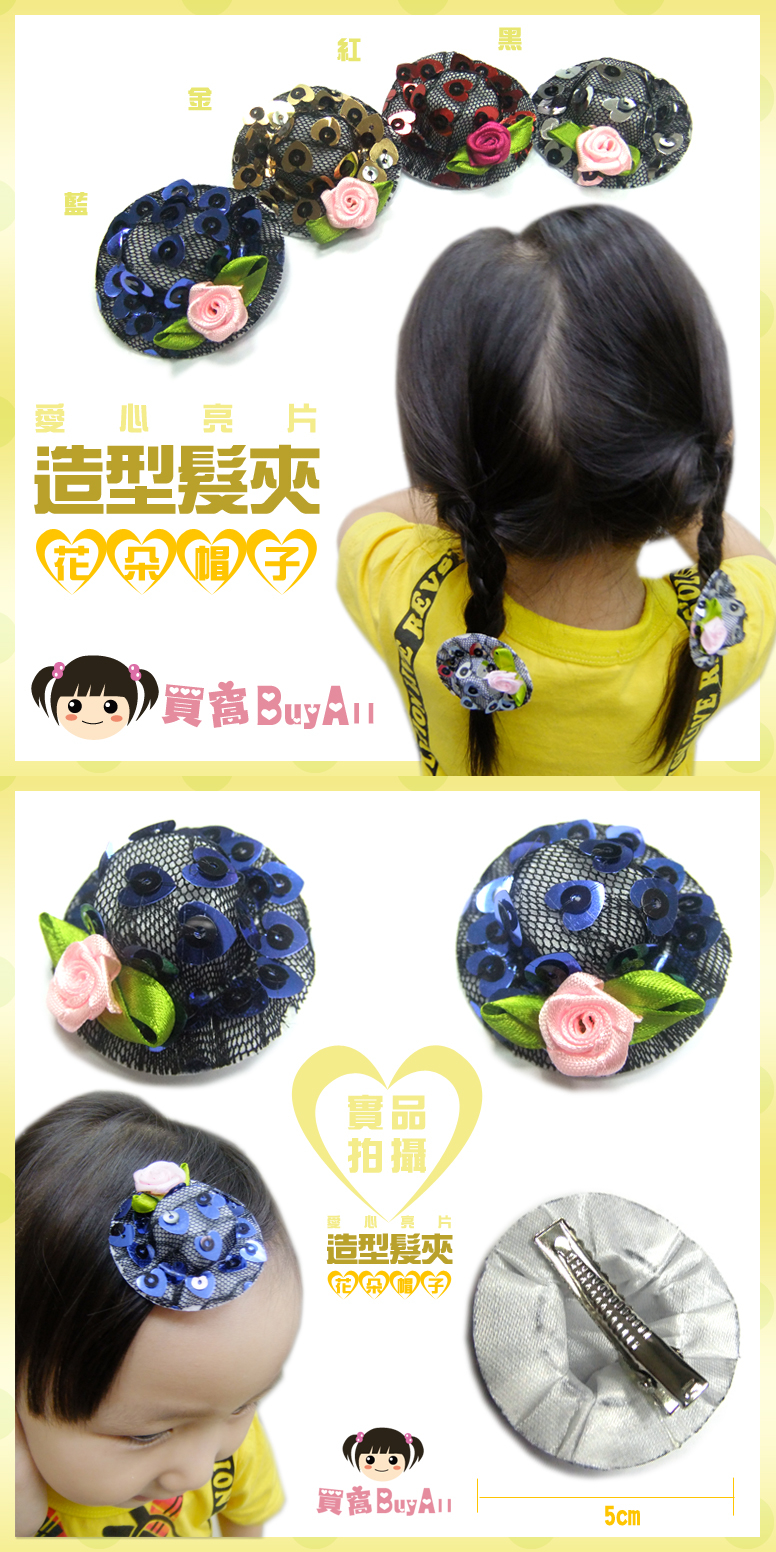 【兒童髮飾配件系列】 愛心亮片蕾絲花朵立體帽子髮夾/帽子造型丫夾/兒童髮飾/兒童生日禮物 ,方便好用