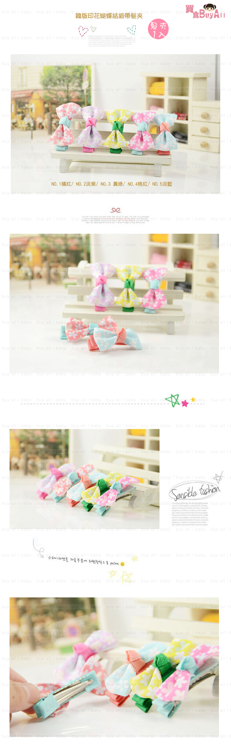【兒童髮飾造型系列】韓版印花蝴蝶結緞帶髮夾/兒童髮夾/兒童髮飾/瀏海夾/彈簧夾《1入裝》☆5色☆