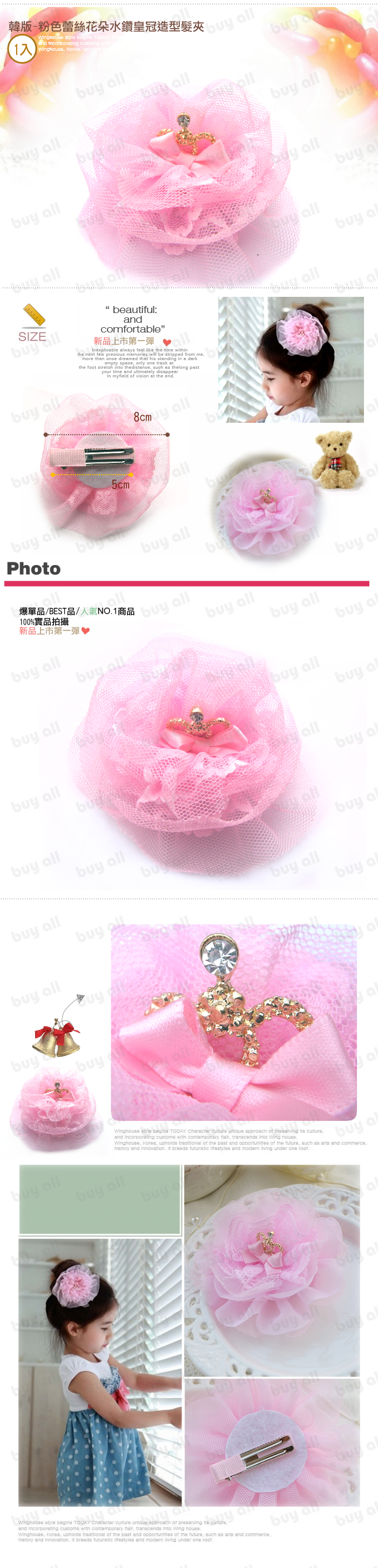 【兒童配件髮飾造型系列】喜氣宴會網紗大花 --韓版-粉色蕾絲花朵金色水鑽皇冠造型髮夾/兒童髮夾/鴨嘴夾/橫夾☆1入裝☆