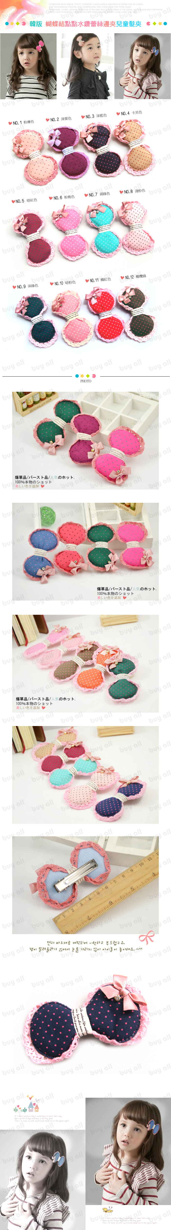 【兒童配件髮飾造型系列】韓版 蝴蝶結點點水鑽蕾絲邊夾/兒童髮夾/Y夾/兒童髮飾/ 寶寶髮夾瀏海夾/ 開口夾《1入裝》 ☆12色☆