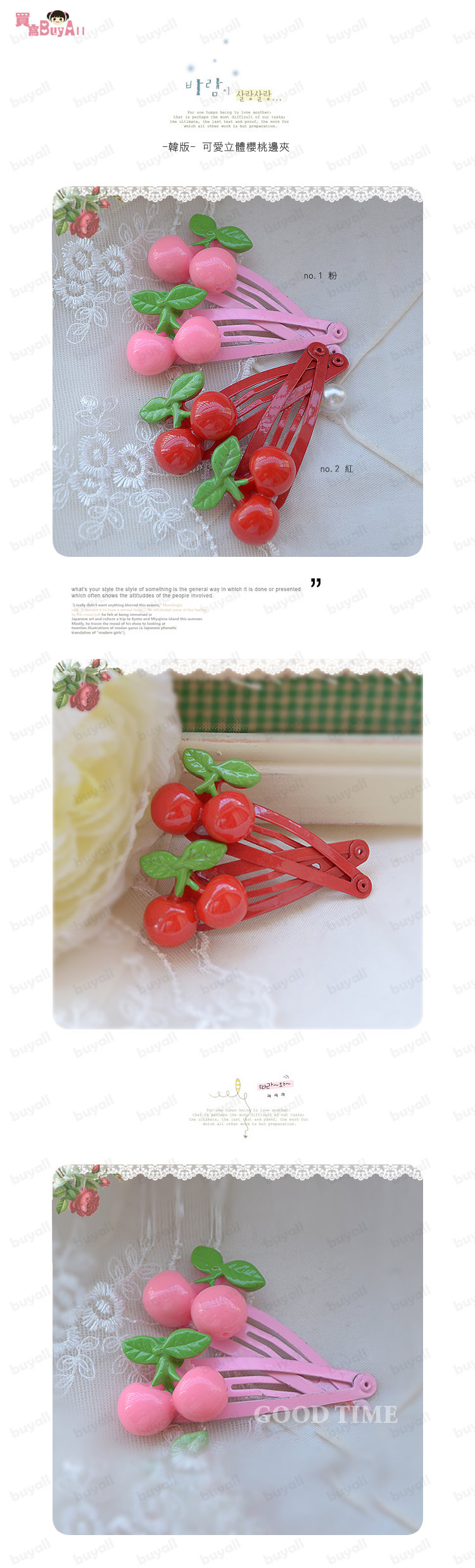 【兒童髮飾造型系列】聖誕節,年節系列- 可愛立體櫻桃邊夾/寶寶髮夾/兒童髮夾/兒童髮飾/瀏海夾/彈簧夾《1入裝》