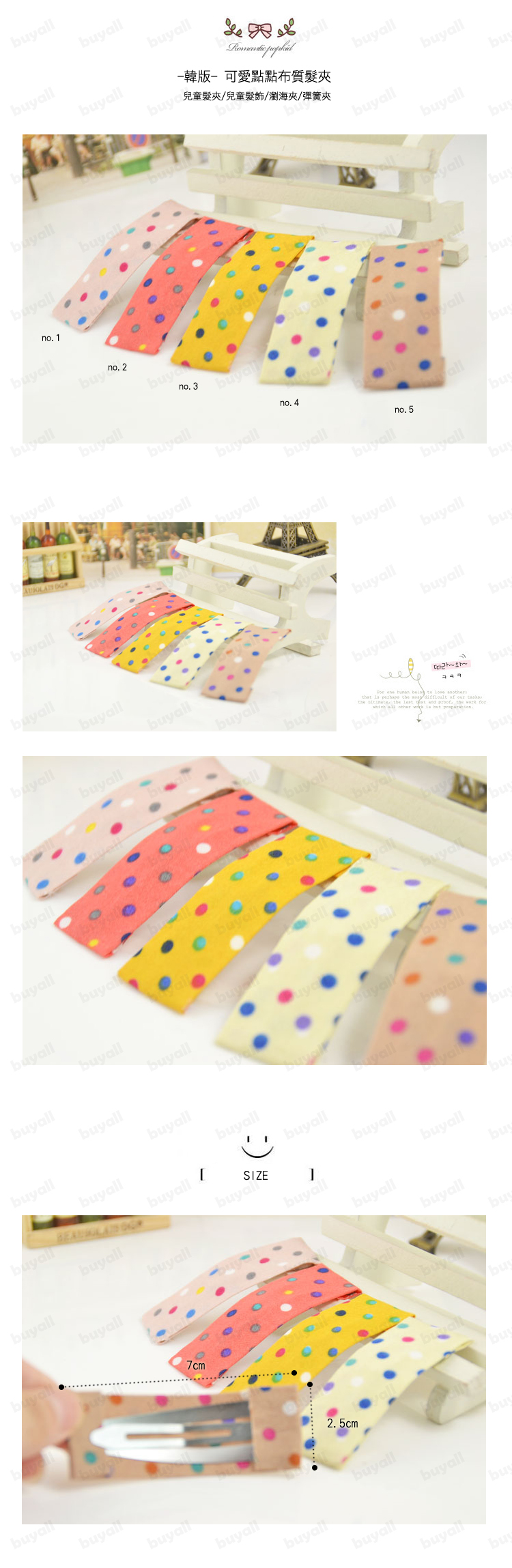 【兒童髮飾造型系列】-韓版- 可愛點點布質髮夾/BB夾/兒童髮夾/兒童髮飾/瀏海夾/彈簧夾《1入裝》