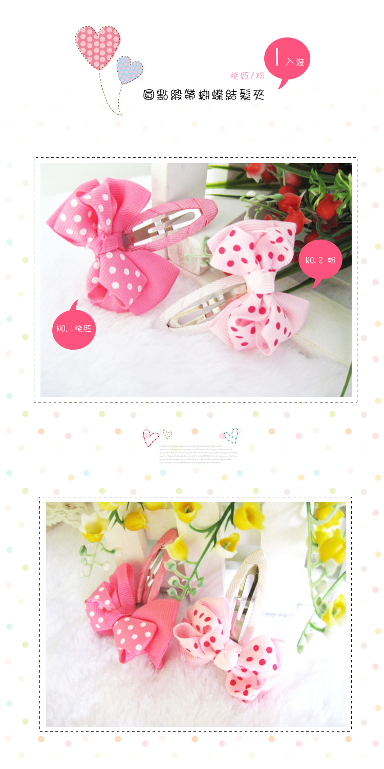 【兒童髮飾造型系列】圓點緞帶蝴蝶結髮夾寶寶髮夾/兒童髮夾/兒童髮飾/瀏海夾/彈簧夾《1入裝》☆2色☆