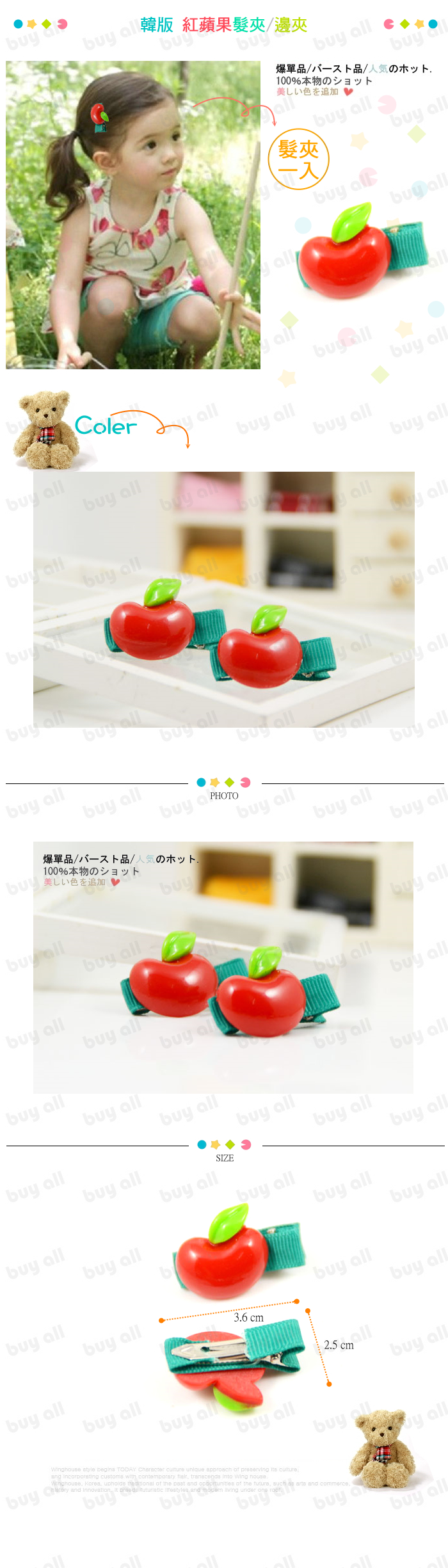 【兒童髮飾宴會造型系列】韓版可愛紅蘋果髮夾/邊夾/開口夾Y夾/兒童髮飾/ 宴會髮飾/兒童髮夾/瀏海夾《1入裝》
