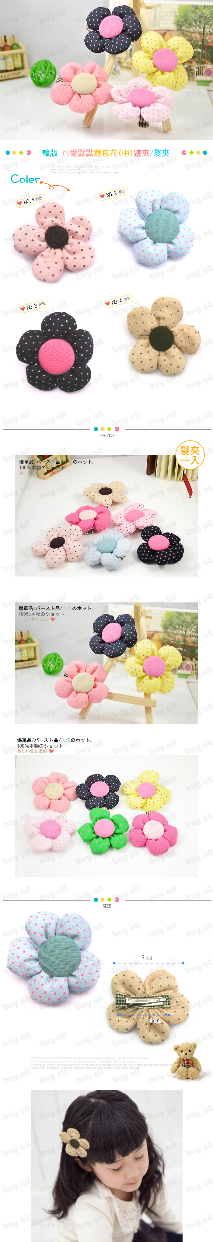 【兒童髮飾造型系列】韓版 可愛點點麵包花(中)邊夾/兒童髮夾/開口夾/Y夾/兒童髮飾/ 寶寶髮夾/兒童髮夾/瀏海夾《1入裝》☆4色☆