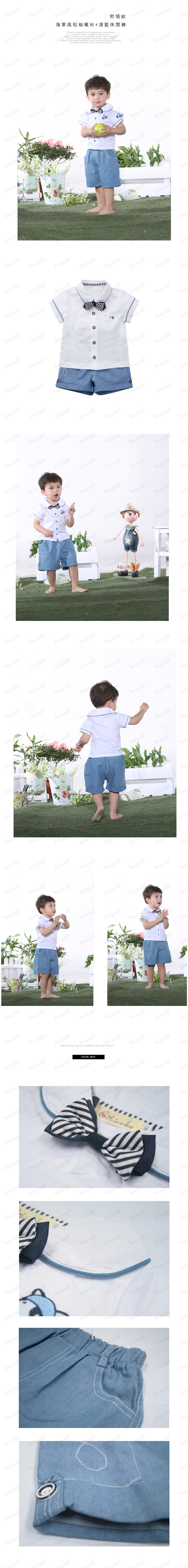 【王子時尚宴會休閒兩相宜服飾,喜筵.週歲,生日最佳禮服】舒適棉質,春夏套裝 海軍風短袖襯衫+淺藍休閒褲 ☆附領結☆80-100