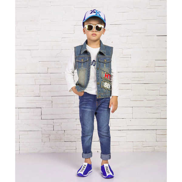 【夏日牛仔系列】帥氣牛仔數字背心/無袖上衣/兒童服飾/牛仔背心☆100-150☆