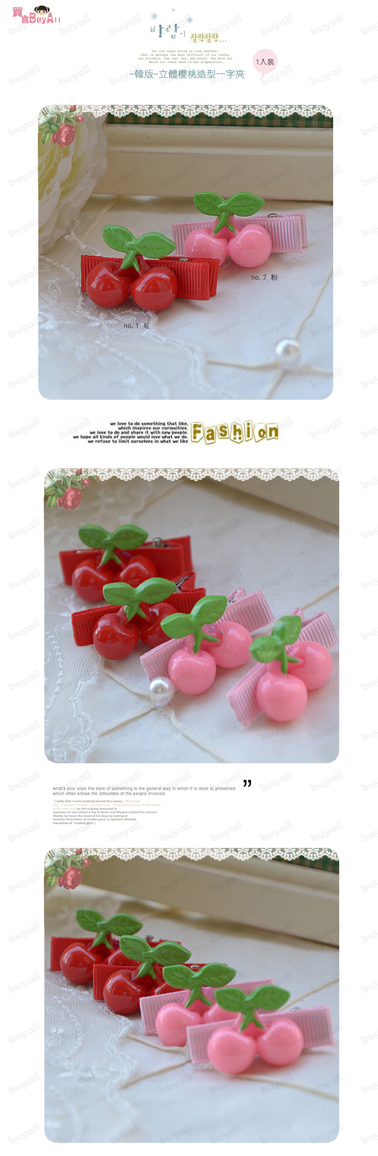【兒童配件髮飾】聖誕節,年節系列,立體櫻桃造型一字夾 /小鴨夾/立體髮夾/寶寶髮夾/兒童髮飾/鴨嘴夾/橫夾☆1入裝