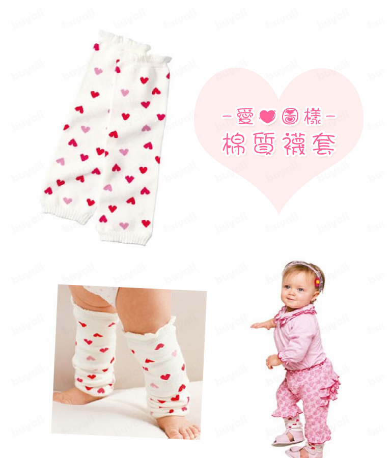 【愛寶貝兒童e超商】愛心圖樣棉質襪套 冬天也可當袖套,春夏天可當裝飾新潮配件或寶寶爬行護套