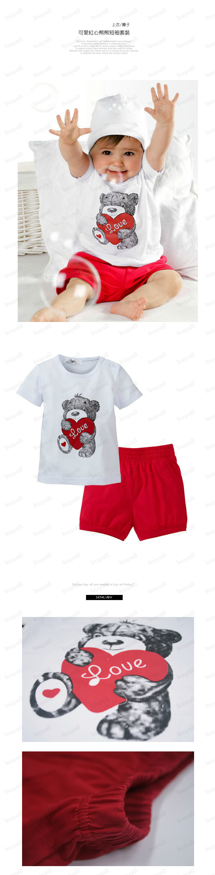 【小童帥氣春夏休閒服飾系列】可愛紅心熊熊短袖套裝☆上衣+短褲/春夏褲裝☆80-100
