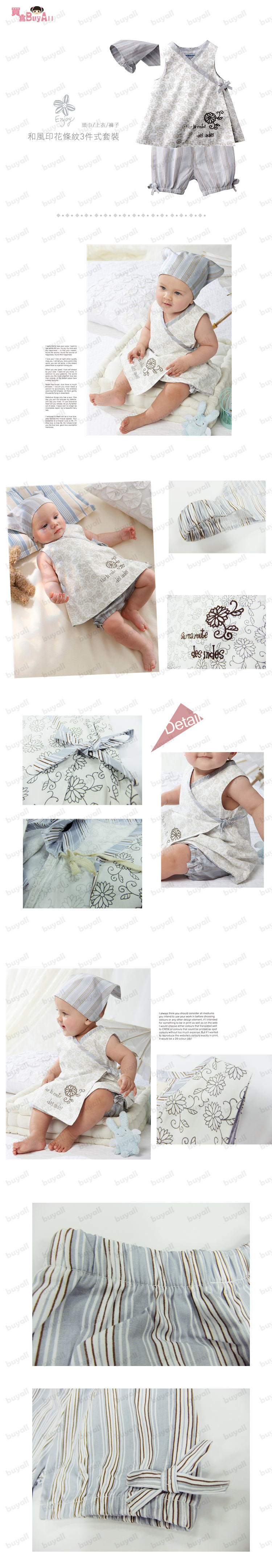 【女童和服套裝系列,週歲,拍照必備】充滿了古典氣質的民族風套裝/和風印花條紋3件式套裝/春夏套裝/造型套裝☆80/90/100