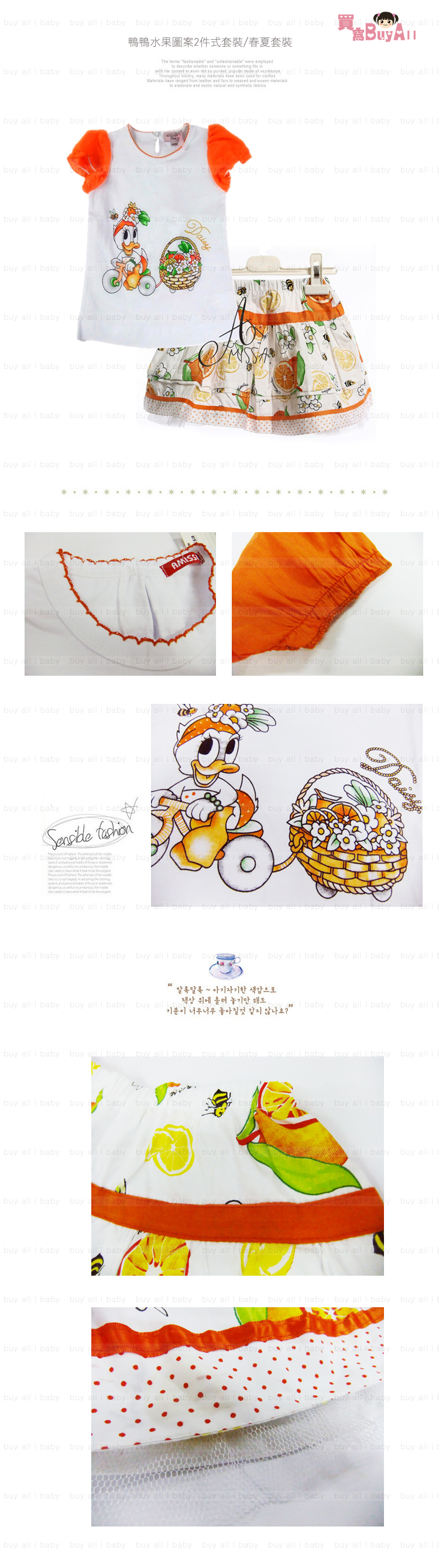 【不撞杉原單AMISSA品牌女童獨特設計水果套裝】鴨鴨水果圖案2件式套裝/春夏套裝☆80/90/100