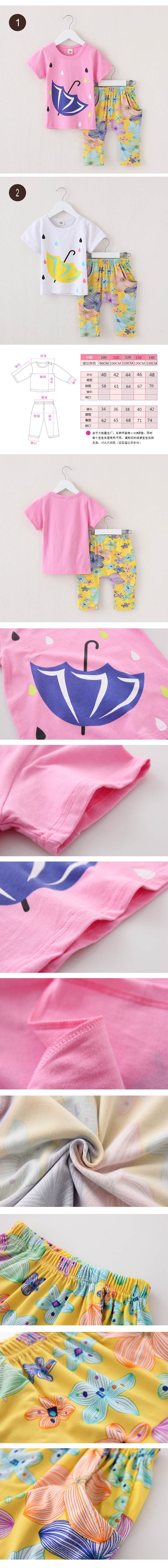 【春夏超優質商品棉質套裝2件組】精緻棉料可愛雨傘套裝2件組-休閒風7分褲+短袖上衣/春夏兒童服飾100-140