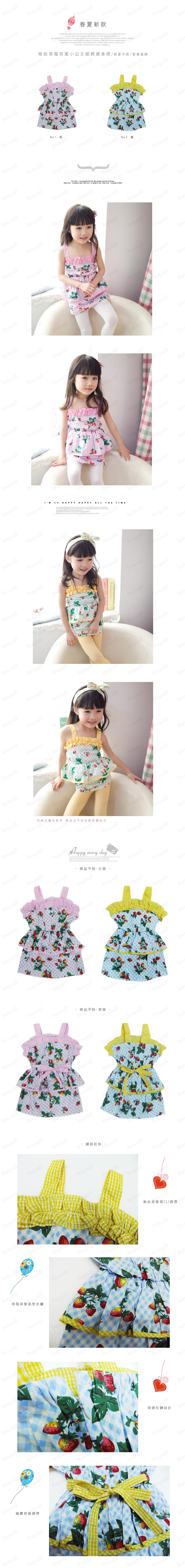 【假2件設計款露背連身裙】格紋草莓荷葉小公主細肩連身裙/春夏洋裝/宴會服飾 ☆粉/黃☆ 100~140cm
