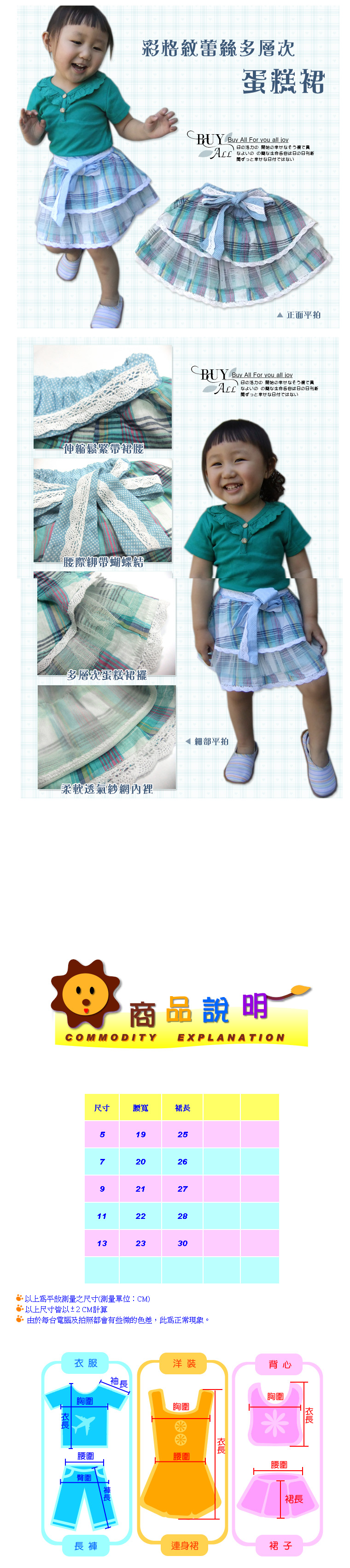 韓國珣彩設計款彩格紋多層次蝴蝶結蛋糕裙/春夏短裙/女童短裙/棉質短裙/兒童服飾 5-13號
