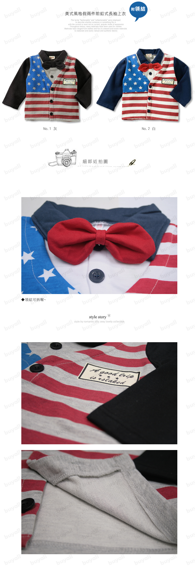 秋冬開打本週超值精選特惠【男童喜慶,宴會,畢業,花僮最佳服飾】是外套也是上衣,兩穿式多場合四季實穿美式風格假兩件長袖上衣外套☆附領結80-110