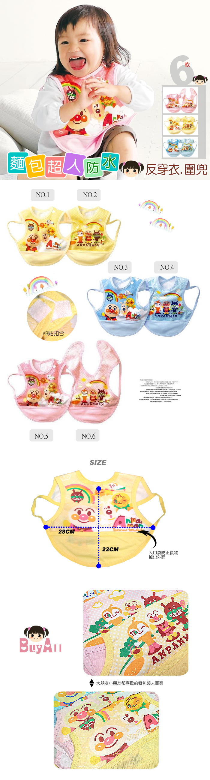 【兒童圍兜,百貨,配件用品系列】優質新款大朋友小朋友者喜歡的麵包超人圖案反穿衣/圍兜/卡通圍兜/口水巾☆6款