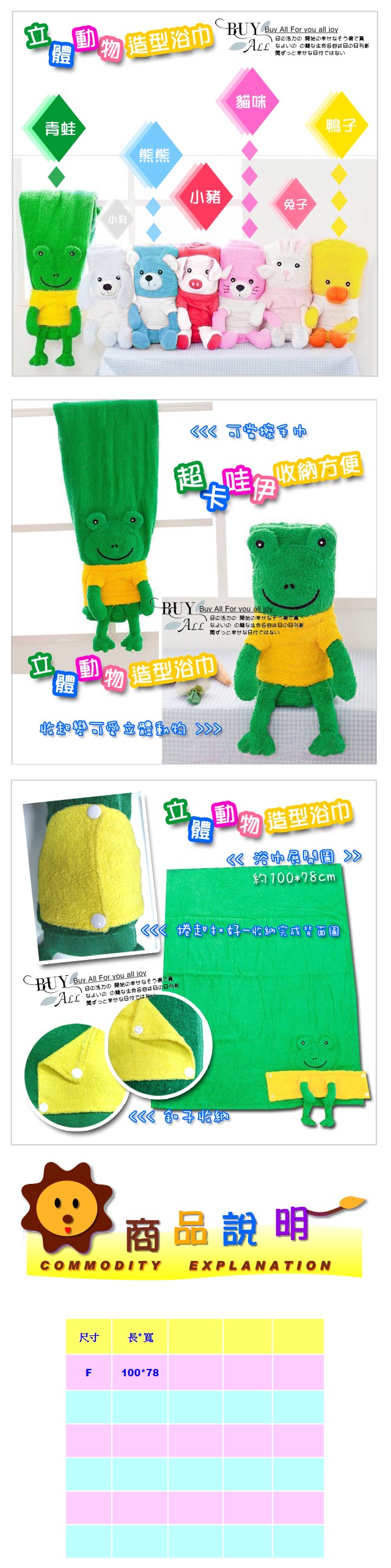 【泡湯,旅遊增添樂趣】超卡哇伊造型浴巾增添洗澡的樂趣也可當擺飾品,彌月贈禮~立體動物造型可收納式浴巾/彌月賀禮