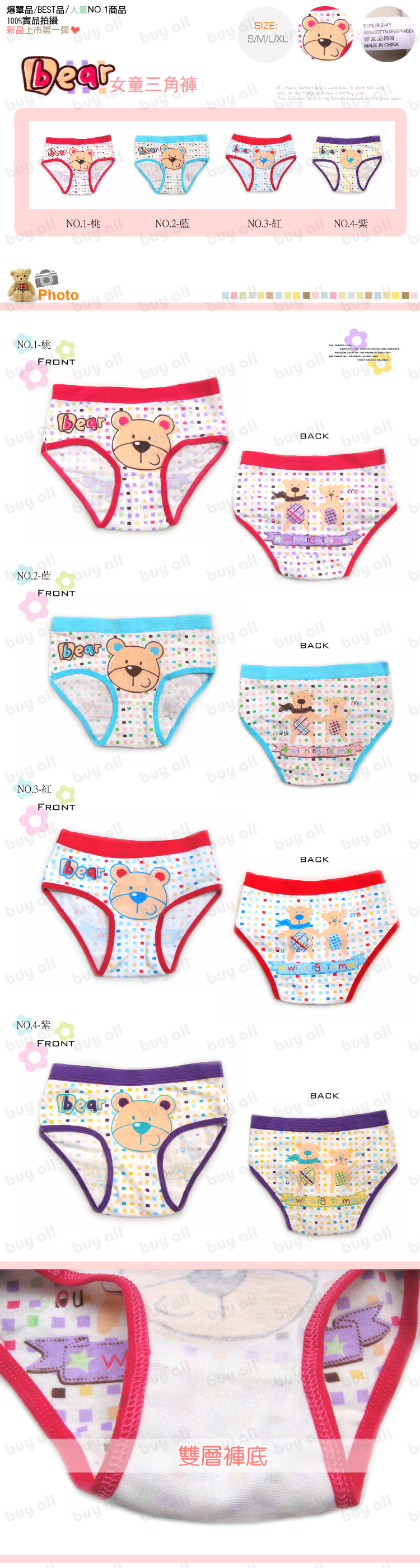 【兒童內褲配件系列】女孩可愛三角褲 精緻棉質透氣好穿的精緻棉質好穿的卡哇伊 Bear女童三角褲/兒童內褲/棉質內褲 4色 S-XL
