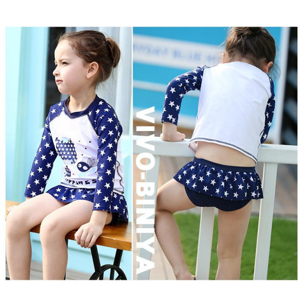 長袖防曬分體泳衣潛水衝浪服【春夏戲水,秋冬泡湯四季可穿兒童泳裝系列】特殊防曬及速乾特性3件式泳衣+泳褲+泳帽套裝組/泡湯裝/戲水沙灘裝☆