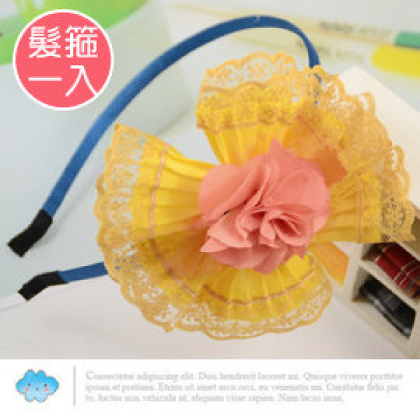 【兒童表演,宴會,裝扮配件髮飾造型系列】夢幻黃色蕾絲花髮箍/兒童髮飾/髮圈/兒童飾品