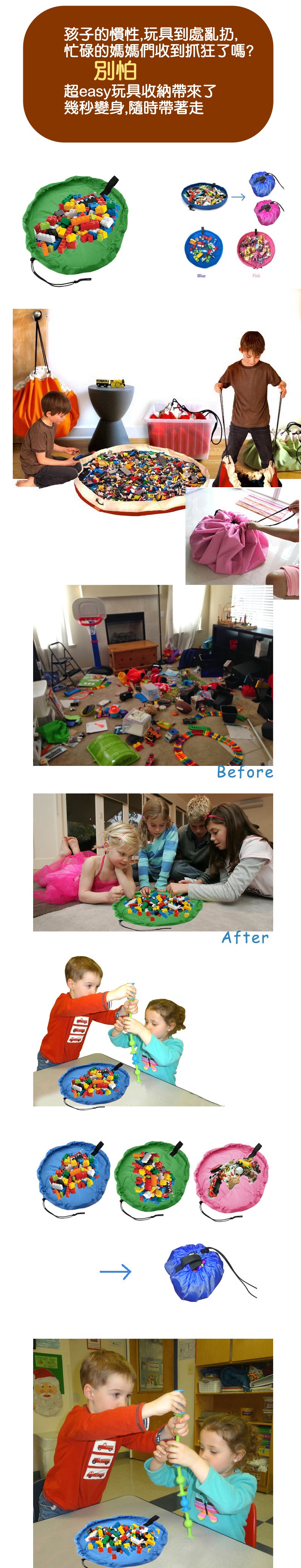【訓練寶貝從小養成自律,收拾貼身玩具】快速玩具魔法收納袋,多功能收納包,讓媽媽省時省力 /玩具收納袋/置物袋/隨身玩具墊