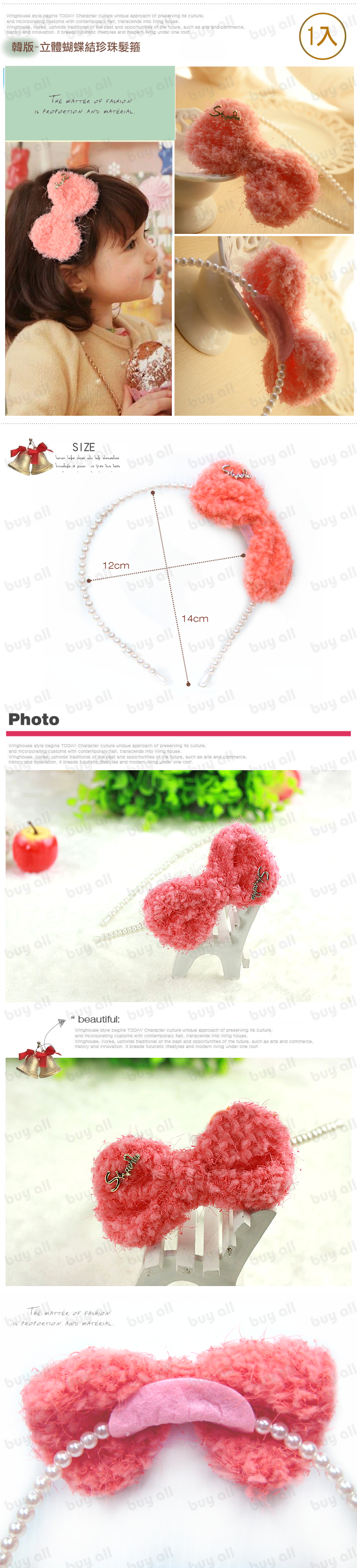 【百貨,兒童表演,宴會,裝扮配件髮飾造型系列】-韓版-立體蝴蝶結珍珠髮箍 /兒童髮飾/髮圈/兒童飾品