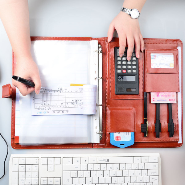A4文件夾商務活頁夾計算器皮質4S經理房產銷售夾多功能文件夾/資料夾/辦公文具附記算機
